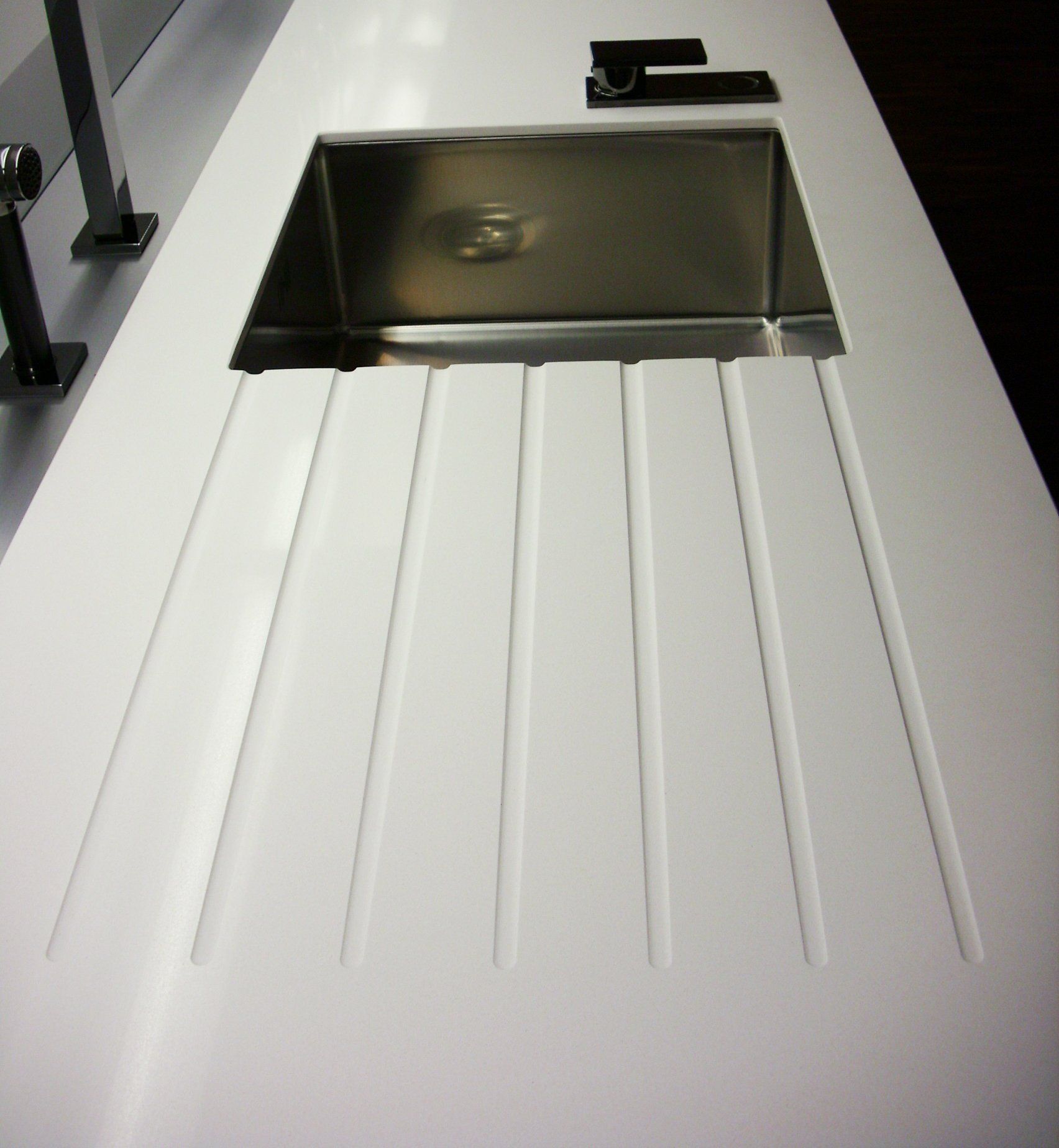 Im Küchenbereich realisieren wir vielfältige Ideen: dicke und dünne Küchenarbeitsplatten aus verschiedensten Materialien mit Ausschnitten für Waschbecken, Herd oder einzelne Herdplatten, Ablaufrillen oder -flächen, Rückwände und Regale.